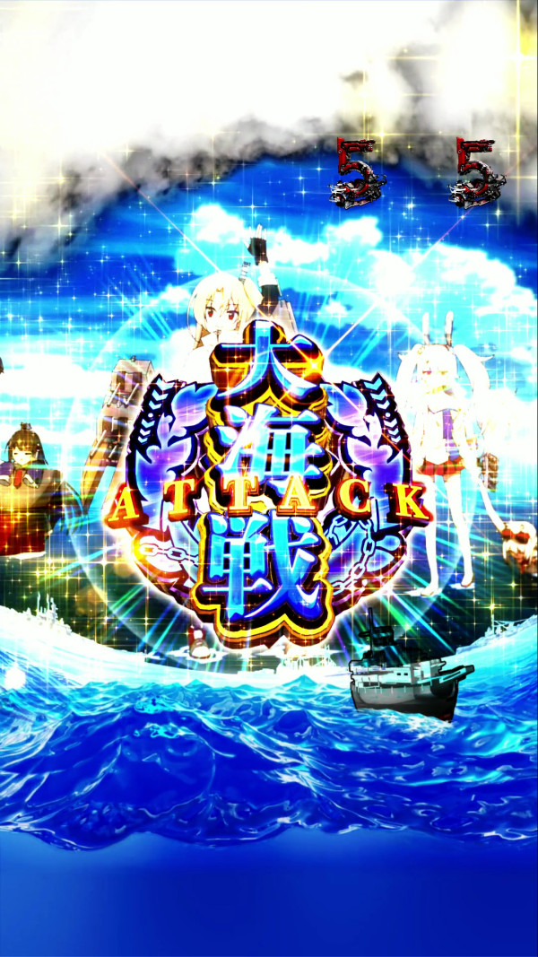 大海戦ATTACKロゴ停止から発展する約320発~約790発獲得可能な2~5R大当りで、演出に成功すれば決戦BIG BONUSへ突入する。