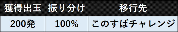 200発獲得可能な4R大当りで、ラウンド終了後はST6回転+残保留4個の「このすばチャレンジ」へ突入する。●大当りの振り分け(通常時・特図1)