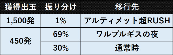 告知発生で「ワルプルギスの夜」突入!?●大当りの振り分け(通常時・特図1)