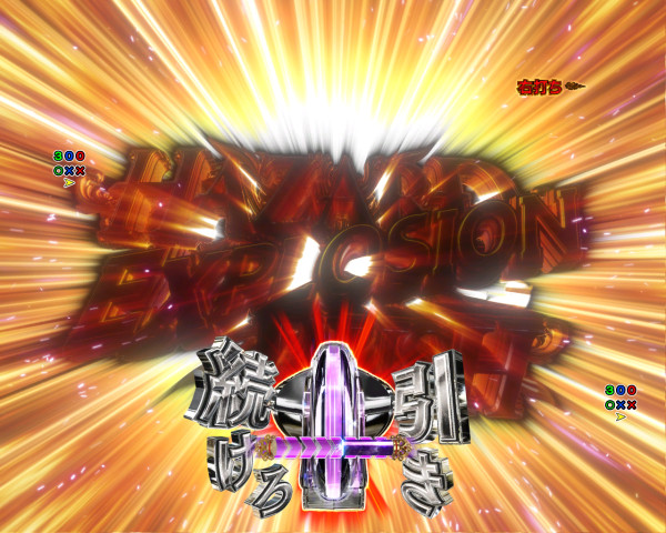 200発獲得可能な大当りで、昇格演出が発生すればHAZARD RUSH EXPLOSION突入!? なお、昇格演出が発生しなかった場合は通常時へ移行する。※ノーマルモード(約1/159)選択時は発生しない