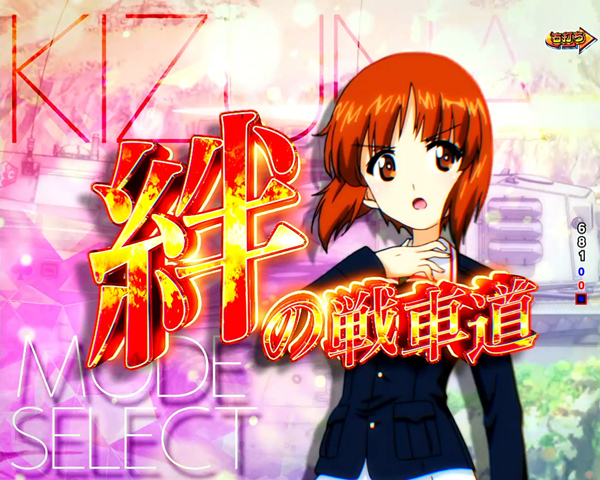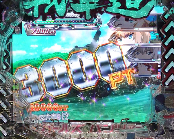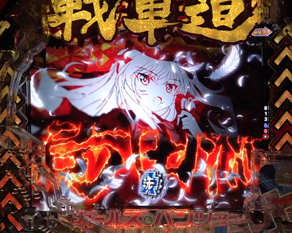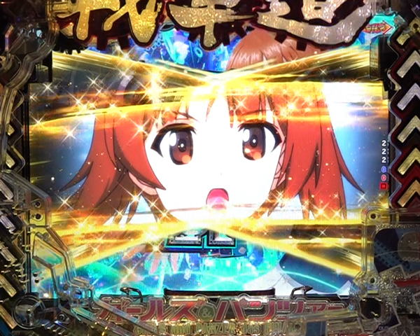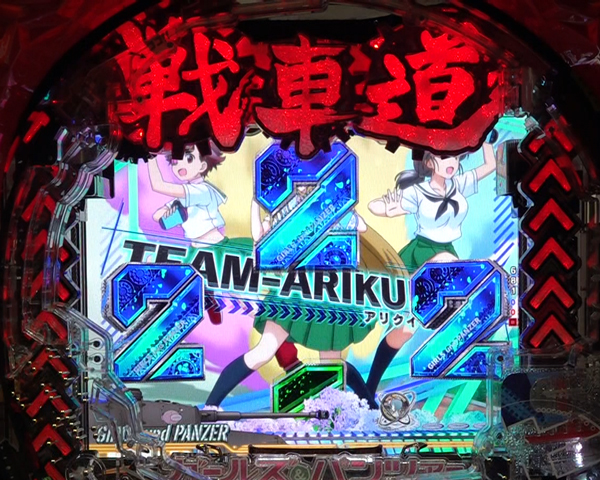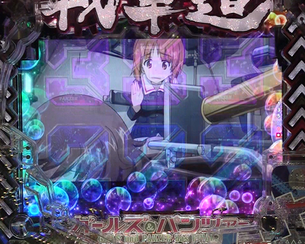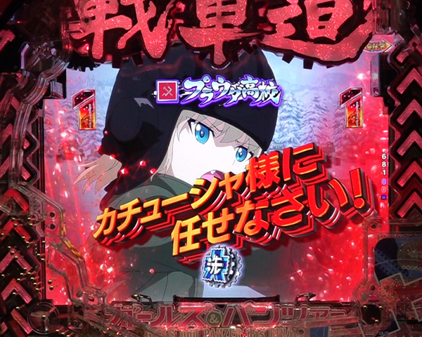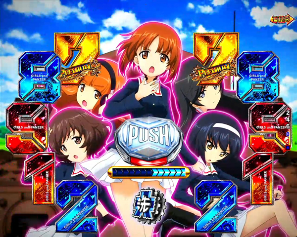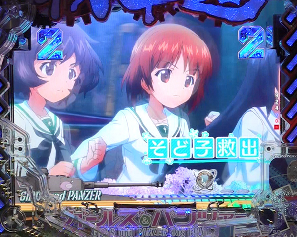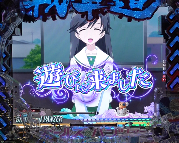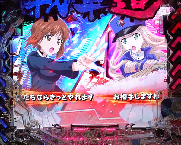 演出 内容 期待度 TOTAL 22.3% タイマー減算 西住みほ ※ 16.9% ダージリン ※ 16.9% マリー ※ 16.9% ボタン一撃 まほ 4,500発以上の大当り濃厚 ミカ ※ 78.5% 愛里寿 ※ 78.5% カチューシャ ※ 78.5% ボタン長押し ケイ ※ 21.7% アンチョビ ※ 21.7% 西 ※ 21.7% 即告知 しほ ※ 大当り濃厚 レバブル 千代 ※ 大当り濃厚