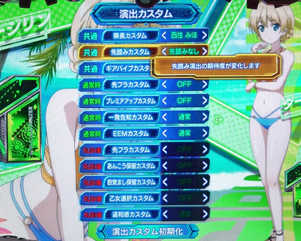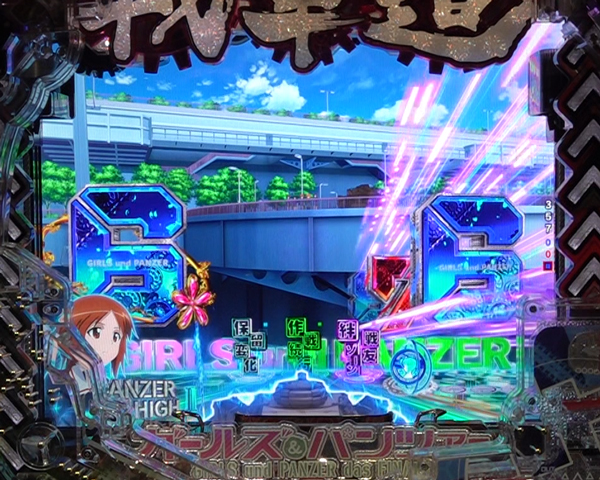 演出 内容 期待度 TOTAL 4.6% キャラパターン 西住みほ ※ 4.6% ダージリン ※ 4.6% マリー ※ 4.6% まほ 4,500発以上の大当り濃厚 ミカ ※ 4.6% 愛里寿 ※ 4.6% カチューシャ ※ 4.6% ケイ ※ 4.6% アンチョビ ※ 4.6% 西 ※ 4.6% しほ ※ 4.6% 千代 ※ 4.6% オブジェクトの色パターン デフォルト 3.9% 赤 大当り濃厚