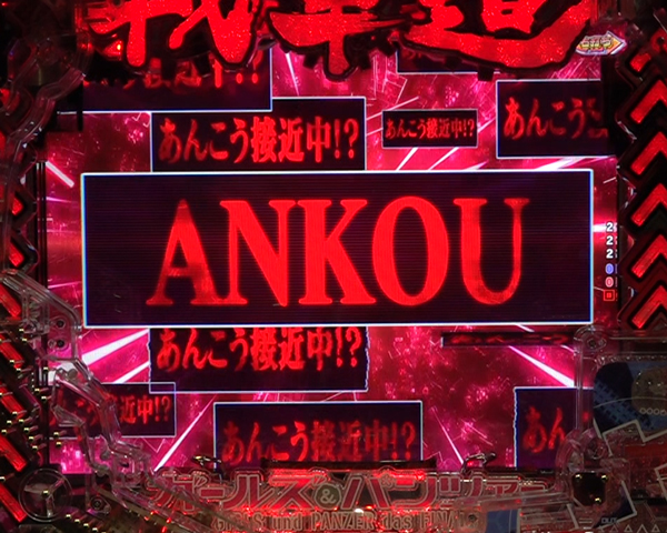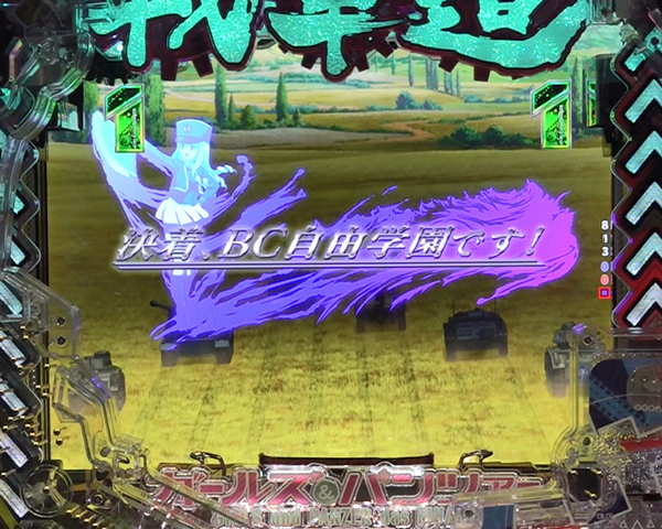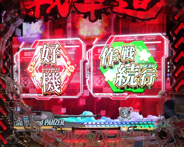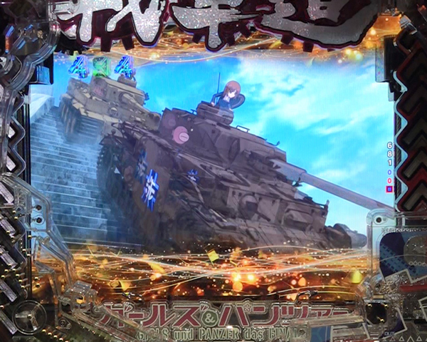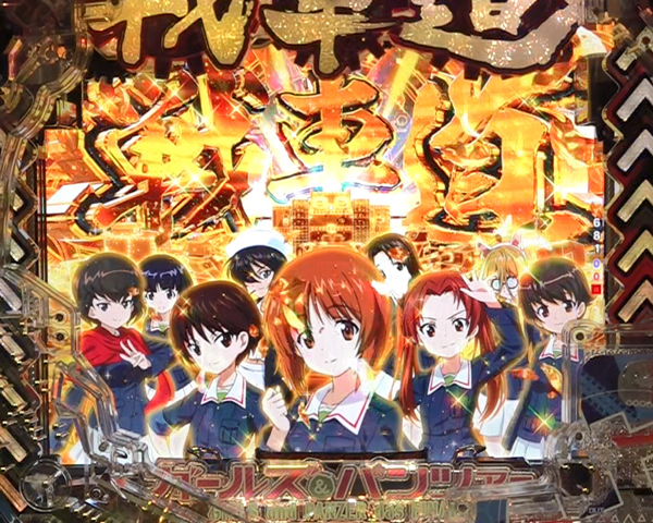 演出 内容 期待度 TOTAL 大洗ver 大当り濃厚 愛里寿ver 大当り濃厚 VS BC自由学園 本編勝利後映像 大当り濃厚 VS 知波単学園 本編勝利後映像 大当り濃厚 VS 継続高校 本編勝利後映像 大当り濃厚