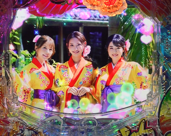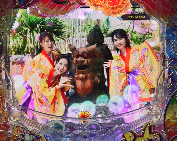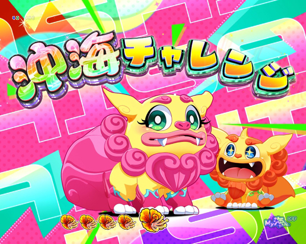 演出 内容 期待度・法則 ボタン 白 デフォルト 青 デフォルト 黄 ズーム2段階目まで発展 レインボー 大当り濃厚 ピンク 大当り濃厚 シーサー表情チャンスアップ 弱 テンパイ煽りまで発展 強 大当り濃厚 ボタンバイブ 発生 大当り濃厚 図柄アクション 弱 デフォルト 強 弱よりも若干チャンスアップ 炎目 大当り濃厚 ブレーキハート目 発生 大当り濃厚 裏ボタン(ウリンボイス) ※ 頑張れ~! デフォルト フレ~♪フレ~♪ デフォルト 怪しいな~ テンパイ煽りを行う いけいけ~ 約50% いい感じだよ! 約66% キタキタ~ 大当り濃厚 げっきアツ~! 大当り濃厚 キュイーン! 大当り濃厚 キュイーン!キュキュキュキュキュキュキュキュイーーン! 大当り濃厚 ピースピースピーース! 大当り濃厚 ※裏ボタンはアーム(シーサー)がボタンを掴むところから下段テンパイあおりで成否が判明する直前までにパールボタンを1回押すと裏ボイスが発生(1度裏ボイスが発生すると再び裏ボタンを押しても発生しない)