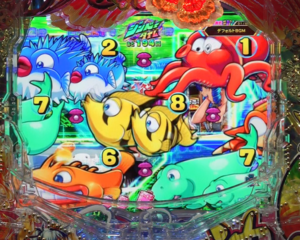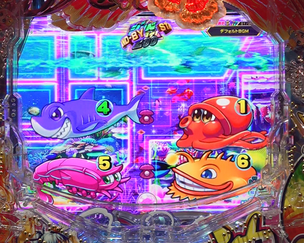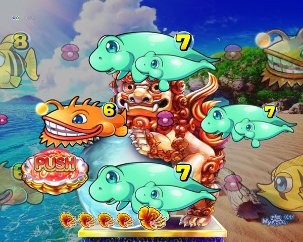 内容 期待度・法則 ハコフグ1匹 リーチ以上濃厚 ハコフグ3匹 SP以上濃厚 タツノオトシゴ1匹 SP発展で期待度アップ タツノオトシゴ3匹 リーチ以上濃厚かつSP発展で信頼度アップ カジキ1匹 約40% 姉シーサー 約83% ハコフグ1匹⇒姉シーサー 約83% タツノオトシゴ1匹⇒姉シーサー 約83% カジキ1匹⇒姉シーサー 約83% クジラ 大当り濃厚 サム 大当り濃厚 クジラッキー&クジラブリー 大当り濃厚