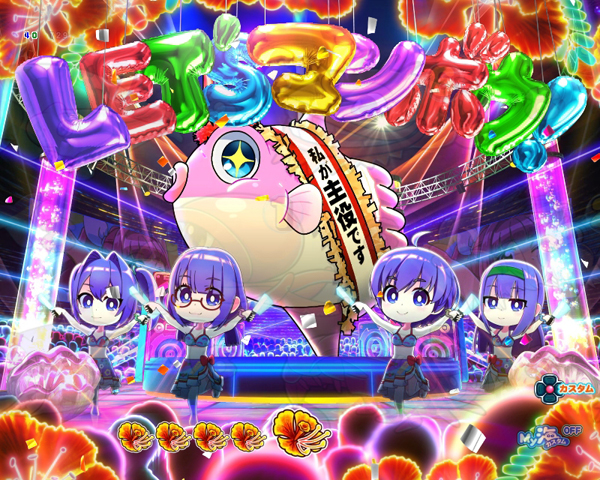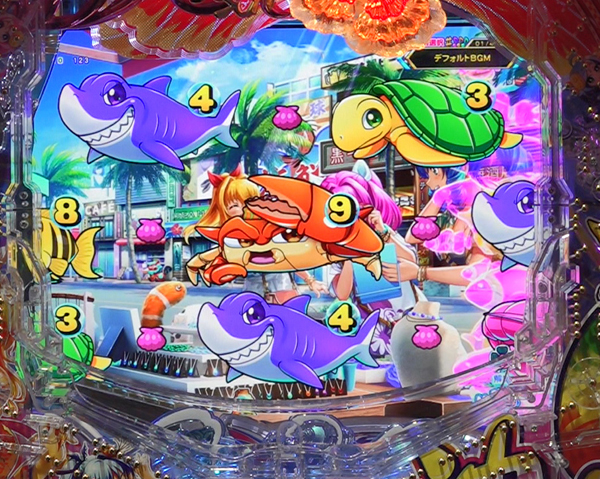 演出 内容 期待度・法則 カチャーシー 無し 調査中 出方 デフォルト 調査中 紫衣装 SU1 デフォルトパターン SU2 リーチ以上濃厚 SU3 SP以上濃厚 SU4 約50% 白衣装 SU2 約30% SU3 約42% SU4白 約82% SU3 ワリン 約56% 花笠娘(星の砂対応) 約17% 花笠娘(シーサー対応) 約17% マリン 約27% サム 大当り濃厚 クジラッキー&クジラブリー 大当り濃厚 SU2 カチャーシー SP発展率アップ SU1 踊り子一人 リーチ以上・ジンベェスプラッシュ擬似連発展率アップ 眼鏡の娘 SP以上濃厚 つまづく SU3 魚群濃厚 SU3でつまづく+SU4に発展 大当り濃厚 リーダー娘 つまづきなし SP濃厚 ミニキャラたちが4人ドアップ 約56%