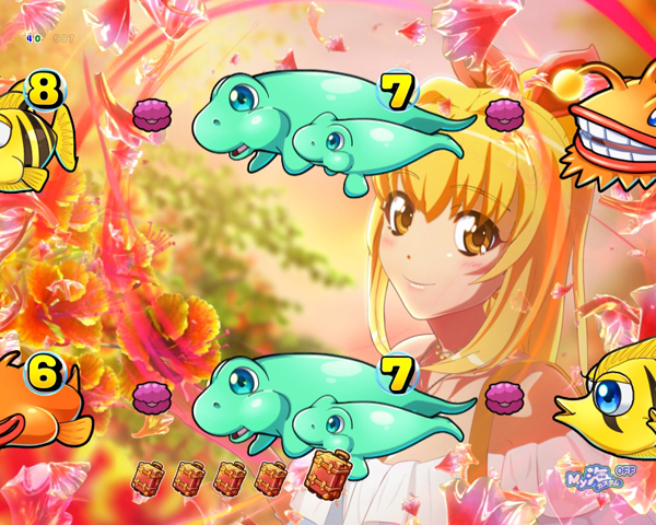 演出 内容 期待度・法則 ボタン ニコニコ デフォルトパターン 照れる デフォルトパターン 文字マンボウ 沖海 SP以上濃厚 「祈」 約57% 「好機」 約81% 緑マンボウ 発生 デフォルトパターン ルーレットマンボウ 怪 SP以上濃厚 続 ジンベェスプラッシュ擬似連濃厚 沖海/沖海⇒沖海 SP以上濃厚 華咲 大当り濃厚 「祈」 大当り濃厚 「好機」 約85% ルーレットマンボウが大きい 約47% マンボウ&こばちぃ&ぴたるん 瞑想 約81% こばちぃ&ぴたるん出現 約75% メカマンボウ 発生 大当り濃厚 裏ボタン ※ 分裂 SP発展すれば魚群!? 疑問(?マーク) デフォルトパターン 親子 ノーマル±1orSP 怒る(口を開けて威嚇) 約20% 電気発生 約23% 光学迷彩(一瞬半透明→実体化) 大当り濃厚 バイブ 大当り濃厚 マンボウ⇒シーサー3匹 約31%