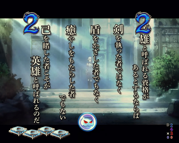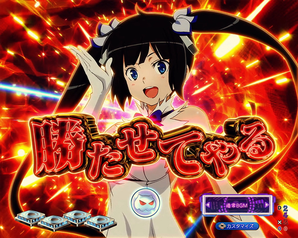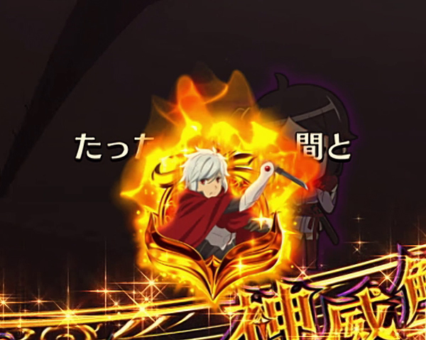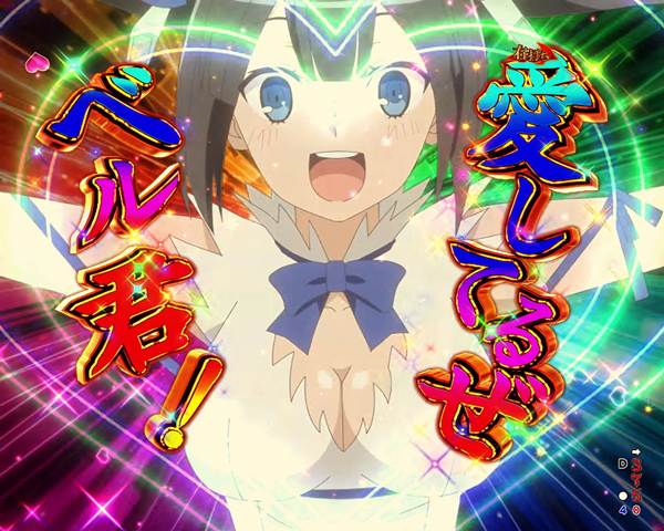 内容 期待度 TOTAL 56.7% 命「ベル殿ならあちらに・・・」(デフォルト色文字) 47.2% 命「ベル殿ならあちらにいます!」(赤色文字) 83.8% 命「あちらでFEVERなら見ました!」(金色文字) 大当り濃厚 春姫「ベル様はあちらにいらっしゃいます!」(赤色文字) 83.8% 春姫「あちらでFEVERならば見ました!」(金色文字) 大当り濃厚