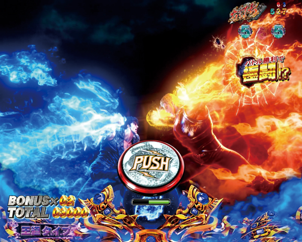 演出 内容 期待度 TOTAL 約76.8% 先制分岐 競り合い 約67.6% 殴り合い 約95.0% 敵先制時コメント 通常 約61.4% チャンス 約94.1% 敵攻撃 強攻撃 約57.1% 中攻撃 約94.1% 弱攻撃 大当り濃厚 終盤ボタンパターン 通常 約60.7% 通常以外 大当り濃厚