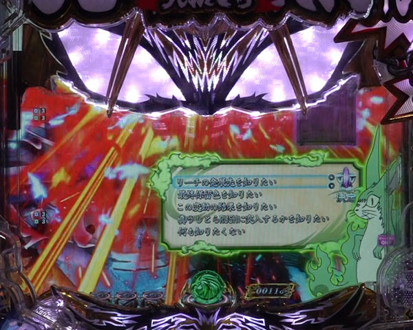 演出 内容 期待度 TOTAL 58.00% 敵パターン 白面の者 44% 黒炎 88% 斗和子 58% くらぎ 67% 敵キャラ名色種別 赤 86% 虹 大当り濃厚 開始表示種別 死闘 92% 激熱 大当り濃厚 敵セリフ種別 赤 94% 金 大当り濃厚 とらセリフ種別 赤 87% 金 大当り濃厚 攻撃前兆背景種別 曇った背景+雷 74% とら攻撃種別 爪 47% 雷撃 69% 二体で最強 大当り濃厚 当落ボタン種別 赤 大当り濃厚 赤+バイブ 大当り濃厚 虹レバー引き+バイブ 大当り濃厚 レバー引き 大当り濃厚 レバー押し込み 大当り濃厚 うしお合流煽り 成功 大当り濃厚