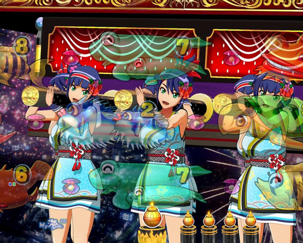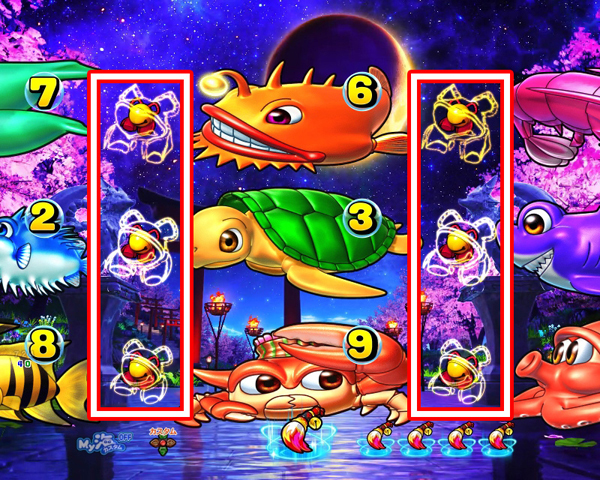 演出 内容 期待度・法則 点滅 水色点滅 ※1 約66% 赤点滅 大当り濃厚 虹点滅 奇数当り濃厚 ナギルート ナギ「見て見て♪」 約82% ナギ「ふふーん♪」 大当り濃厚 マリン 約59% ワリン 約92% ウリン 大当り濃厚 火鈴(狐) 約75% 火鈴(人) 奇数当り濃厚 ナギナミ 奇数当り濃厚 ナミルート ナミ「見て見て♪」 約82% ナミ「ふふーん♪」 大当り濃厚 火鈴(人) 大当り濃厚 クラゲ 奇数当り濃厚 サメ 奇数当り濃厚 %表示後裏ボタン 変化する場合がある ※2 ナギナミルート 発生 奇数当り濃厚 ボタン ナギナミ柄ボタン 奇数当り濃厚