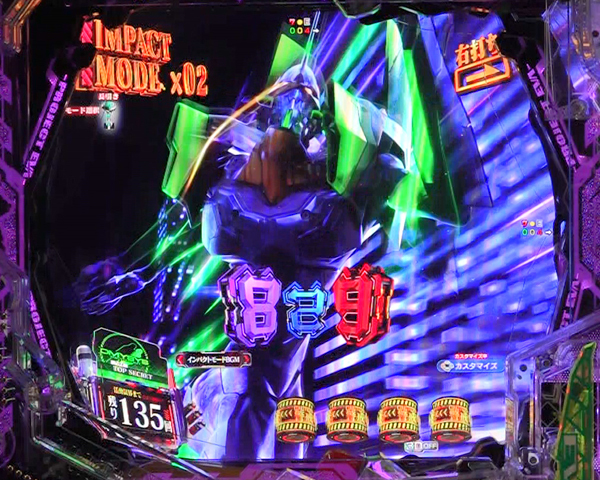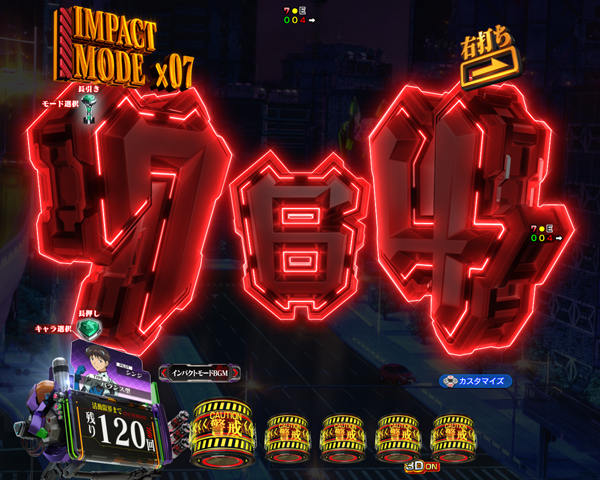 内容 期待度 零号機 大当り+インパクトモード突入濃厚 弐号機 大当り+インパクトモード突入濃厚 初号機 大当り+インパクトモード突入濃厚 四号機 10R大当り+インパクトモード突入濃厚