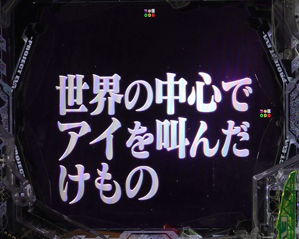 内容 期待度 TOTAL 約80% レイ、心の向こうに 約73% アスカ、来日 約72% 使徒、襲来 約85% 好機、襲来 約85% 見知らぬ、天井 大当り濃厚 鳴らない、電話 大当り濃厚 雨、逃げ出した後 大当り濃厚 決戦、第3新東京市 大当り濃厚 人の造りしもの 大当り濃厚 マグマダイバー 大当り濃厚 静止した闇の中で 大当り濃厚 奇跡の価値は 大当り濃厚 使徒、侵入 大当り濃厚 ゼーレ、魂の座 大当り濃厚 嘘と沈黙 大当り濃厚 死に至る病、そして 大当り濃厚 四人目の適格者 大当り濃厚 命の選択を 大当り濃厚 男の戦い 大当り濃厚 心のかたち、人のかたち 大当り濃厚 ネルフ、誕生 大当り濃厚 せめて、人間らしく 大当り濃厚 涙 大当り濃厚 最後のシ者 大当り濃厚 終わる世界 大当り濃厚 世界の中心でアイを叫んだけもの 大当り濃厚 Air 約90% まごころを、君に 大当り濃厚 【走馬灯あり】 約95%