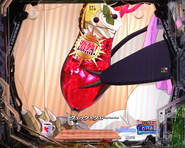 演出 内容 期待度 TOTAL 3%未満 TOTAL 1段階 3%未満 2段階 約5% シンジ 3%未満 アスカ 3%未満 レイ 3%未満 ミサト 約19% リツコ 3%未満 マヤ 3%未満 ゲンドウ 3%未満 冬月 3%未満 加持 約11% カヲル 大当り+インパクトモード突入濃厚