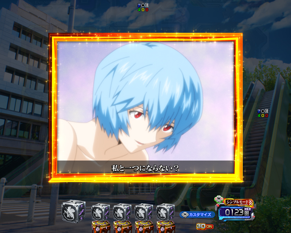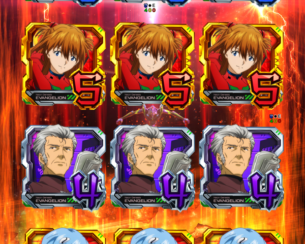 内容 期待度 TOTAL 大当り濃厚 レイ背景 大当り濃厚 レイ背景(ボイス有) 大当り濃厚 アスカ 大当り濃厚 ユイ 大当り濃厚 リツコとナオコ 大当り濃厚 ミサト 大当り濃厚 ラーメン 大当り濃厚 アスカとペンペン 大当り濃厚 リツコと加持 大当り濃厚 カヲル 大当り濃厚