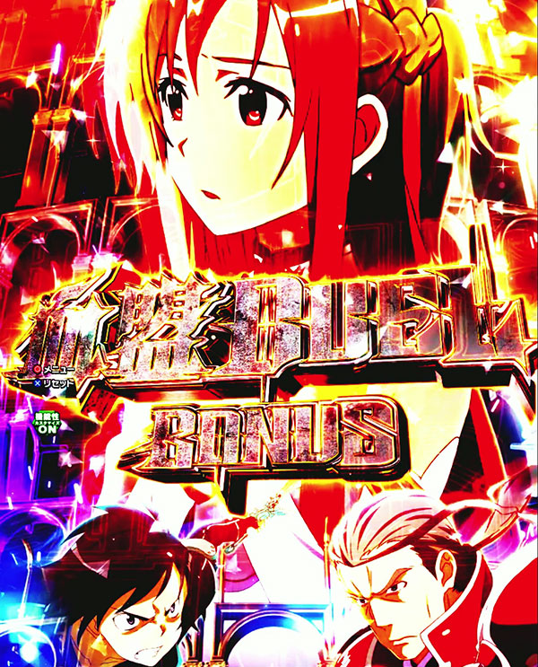 ※1 キリトのBONUS LINKパート中内容 期待度 デフォルト 3%未満 点滅保留 約75.7% 赤保留 超激熱!? 金保留 超激熱!? 高速点滅保留 超激熱!? 小さい保留 超激熱!? 大きい保留 超激熱!? 逆再生保留 超激熱!? 縦揺れ保留 超激熱!? ナーヴギア保留 ※1 超激熱!? たぬ吉アスナ保留 ※2 超激熱!?