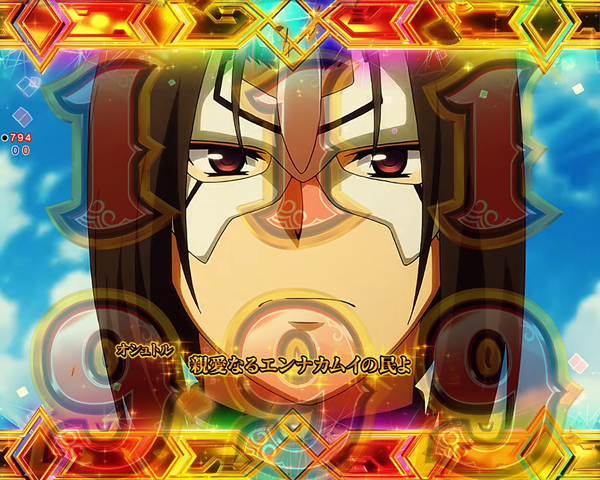 演出 内容 期待度 TOTAL 16.3% 点滅 弱点滅 0.1% 強点滅 ※ 大当り濃厚 色 青 30.9% 緑 43.5% 赤 91.7% 虹 大当り濃厚 金_仮面(ハクオロ) 大当り濃厚 キャラ扇子 クオン 40.9% ネコネ 60.3% アンジュ 41.6% 違和感保留 柄違い 大当り濃厚 位置違い 大当り濃厚 明滅違い 大当り濃厚 振動している保留 94.8%