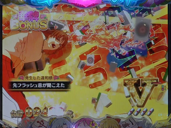 ウィンドウ 違和感内容 BGMが消えた BGMミュート:変動BGM(楽曲)が変動停止までミュート ナナシーのBGMが流れた 変動音変化:変動BGM(楽曲)が変動停止までナナシーBGMに変化 猿渡翔の声が聞こえた あんたやったなボイス:変動開始時に猿渡翔のボイス「あんたやったな」が流れる 清水あいりの声が聞こえた GETボイス:変動開始時に清水あいりのボイス「GET」が流れる 先フラッシュ音が聞こえた 先バレ音:変動開始時に先フラッシュ音が流れる 台枠のランプが消えた 枠ランプ消灯:枠の全てのランプを変動停止まで消灯する 台枠のトップランプが消えた トップランプ消灯:枠のトップランプを変動停止まで消灯する バラが赤く光った 薔薇ランプ点灯:上役物の薔薇ランプが変動停止まで赤色点灯する 華牌ロゴが交互に光った 華牌ロゴ交互点滅:上役物の華牌ランプが変動停止まで交互点滅する 華牌ロゴのランプが消えた 華牌ロゴ消灯:上役物の華牌ランプが変動停止まで消灯する まだLASTじゃねぇ! 突然LAST表示:変動開始時に残り回数アピール「LAST」が表示される ロゴが少しだけ大きくなった RUSHロゴサイズアップ:左上のロゴが変動停止まで僅かにサイズアップする 楽曲選択の枠色が変わった 楽曲選択枠色変化:楽曲選択の枠色が変動停止まで通常時の枠色に変化 ボタンが反応しなかった ボタン無反応:ボタンPUSH煽り変動成功時にボタン無効 ボタンが震えた ボタン一瞬バイブ:変動開始時にボタンが一瞬振動する せせりくんの声が聞こえた せせりくんボイス:変動開始時にせせりくんのボイスが流れる 森本レオ子の声が聞こえた 森本レオ子ボイス:変動開始時に森本レオ子のボイスが流れる チャレンジトヨマル アンバサダーボイス:変動開始時にアンバサダーボイス「チャレンジトヨマル」が流れる -