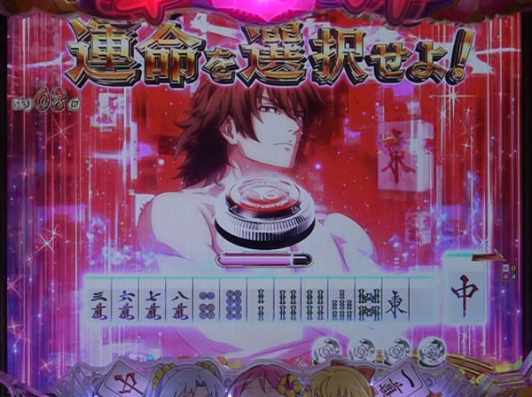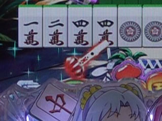 図柄および麻雀テンパイ時に発生するキャラクター通過予告。