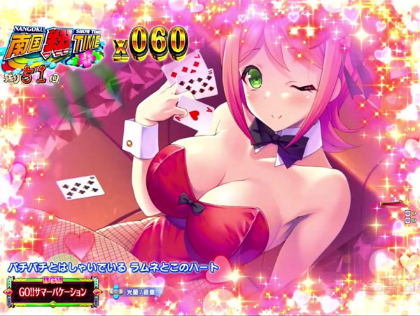 内容 図柄揃い期待度 リー嬢 18% 清水あいり 大当り+南国翔TIME突入濃厚