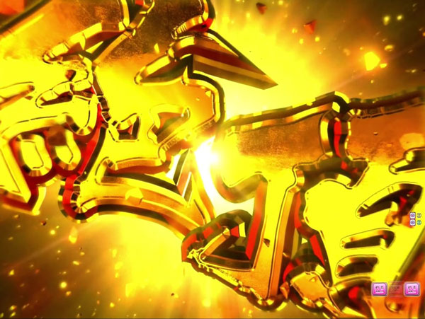 盤面上部に配置されているロゴが高速点滅する予告。ランプの色で期待度を示唆。
