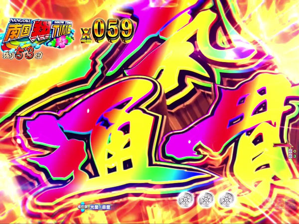 内容 期待度 3テンパイ 大当り濃厚 7テンパイ 大当り+PREMIUM南国翔TIME突入濃厚