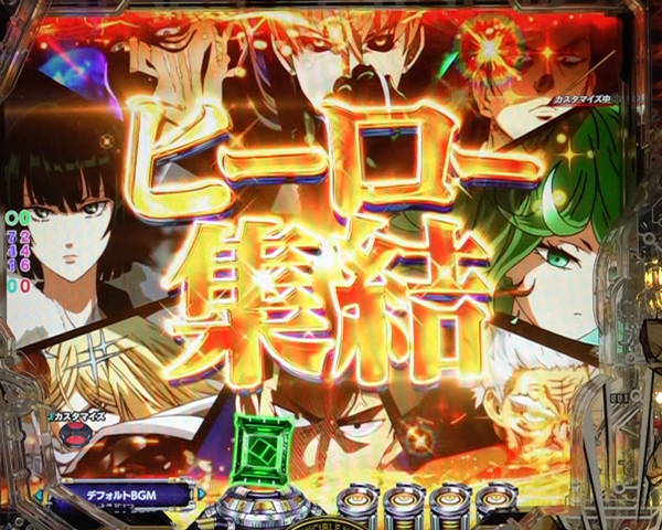 内容 期待度 占有率 先シャウトTOTAL 大当り濃厚 25.0% 赤「ヒーロー」 大当り濃厚 17.5% 金「ワンパーン」 5,000発濃厚 7.5%