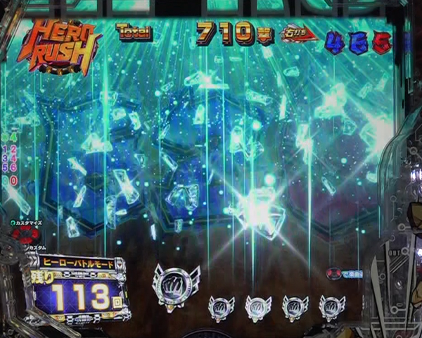 ●押下でパトランプが砕けた変動で大当りすればHERO RUSH濃厚!?