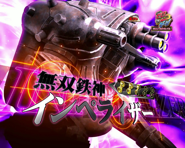 演出 内容 期待度 TOTAL 約50.0% 敵種類 グローザム 約35.7% インペライザー 約60.7% ボガールモンス 約80.0% 敵名色 デフォルト 約44.9% 赤 大当り濃厚 ゼブラ柄 大当り濃厚 信頼度マーク ★2 約30.1% ★2.5 約55.4% ★3 約77.0% ★3.5 約82.9% ★4 約86.2% ★4.5 約95.0% ★5 大当り濃厚 START文字色 デフォルト 約43.2% 赤 約95.0% ゼブラ柄 大当り濃厚 敵攻撃パターン グローザム:ヘルフローズンブレス ※1 約31.1% グローザム:グローザムブレード ※2 大当り濃厚 インペライザー:三連装ガトリングガン ※1 約49.8% インペライザー:マシンナーアーム ※2 約90.0% ボガールモンス:電撃攻撃 ※1 約72.6% ボガールモンス:二又の尾 ※2 約95.0% 被弾煽り時ボタン デフォルトボタン 約46.1% 赤ボタン 大当り濃厚 レバー 大当り濃厚