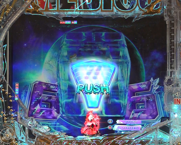 メビウスBONUSのタイトル画面でPUSHボタンを押すと、台枠のクロスランプ&サイドランプの色でRUSH突入期待度を示唆する。演出 内容 成功期待度 裏ボタン押下時 色種類 白 約33.0% 青 約50.0% 緑 約60.0% 赤 約95.0% 虹 成功濃厚