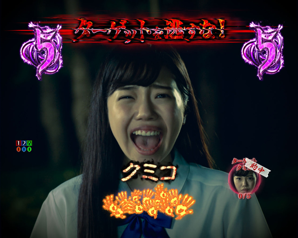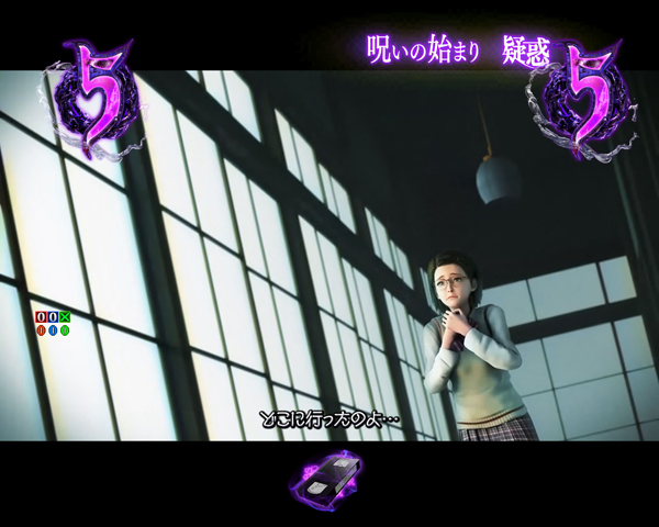キャラ 内容 期待度 マリ 登場⇒立ち止まる⇒キョロキョロ⇒振り返ってライトをあてる 5.9% 登場⇒立ち止まる⇒キョロキョロ⇒上部にライトをあてる 6.4% 登場⇒立ち止まる⇒キョロキョロ(肩に手) 10.2% 登場⇒立ち止まる⇒キョロキョロ(肩に手)⇒振り返る 12.0% カナエ 登場⇒立ち止まる⇒キョロキョロ⇒振り返ってライトをあてる 6.7% 登場⇒立ち止まる⇒キョロキョロ⇒上部にライトをあてる 8.2% 登場⇒立ち止まる⇒キョロキョロ(肩に手) 9.2% 登場⇒立ち止まる⇒キョロキョロ(肩に手)⇒振り返る 10.9%