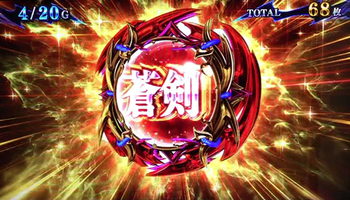 最大6周期到達でAT「蒼剣RUSH」当選濃厚。