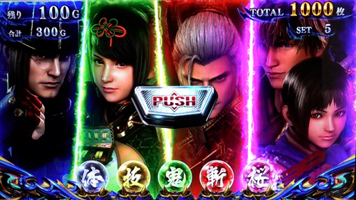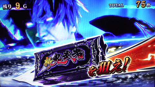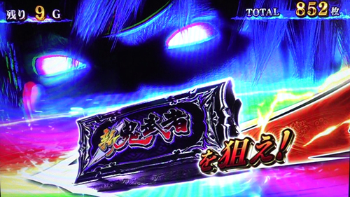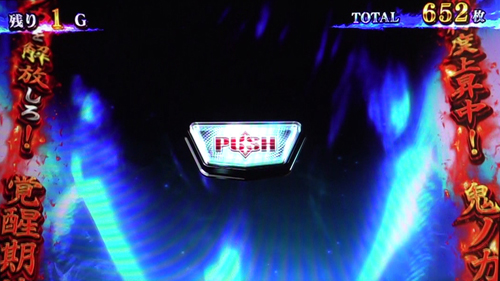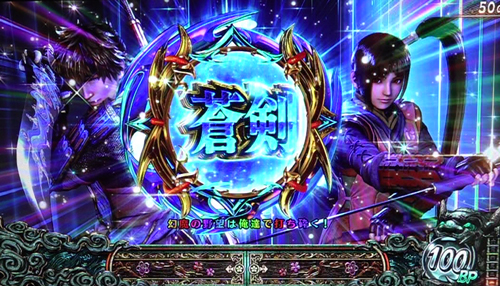 ※紫告知からのボーナス告知みの吉PUSH演出 100G以上の上乗せor真蒼剣BONUS濃厚 上記演出は、発生した時点で大量上乗せやボーナスの大チャンス!