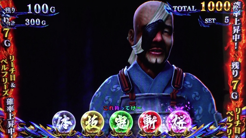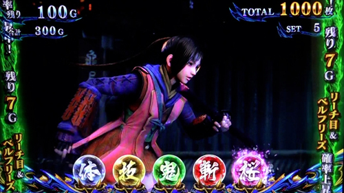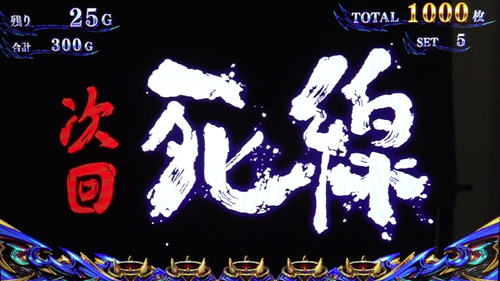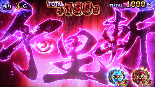 設定6濃厚ゲーム数上乗せ時に特殊上乗せゲーム数が表示されれば設定4以上。さらに一閃込みで200G~600Gの上乗せも濃厚となる。 -