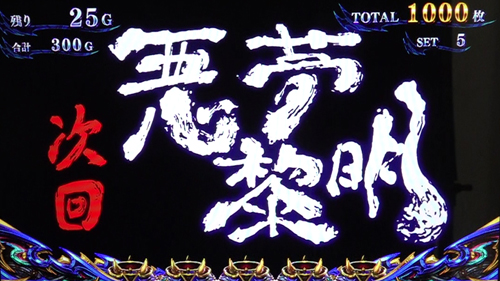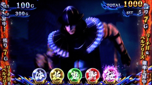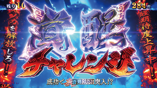 真蒼剣BONUS以上濃厚幻魔演出(レバーカットイン) 100G以上の上乗せor50G以上の上乗せ+ボーナス当選 タイトルカットイン演出 100G以上の上乗せor真蒼剣BONUS以上濃厚