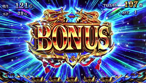 確定の文字色で、当選しているボーナスの種類を示唆。ボーナス確定画面 法則