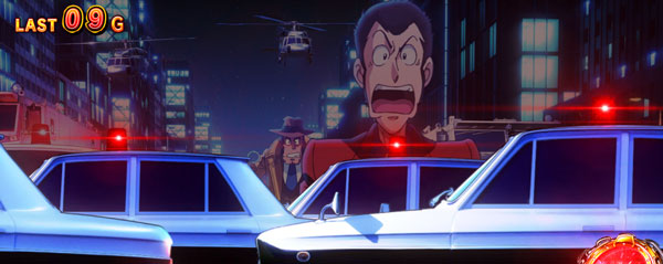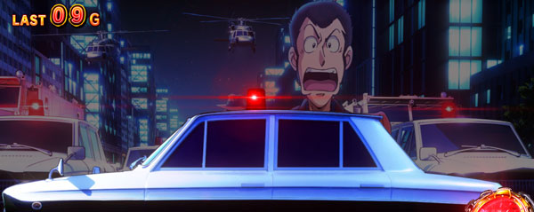 ※パトカー通過時にリプレイが揃うと「ラストジャッジ」成功濃厚パトカー通過 「ラストジャッジ」成功期待度 次元デカタイム 五ェ門デカタイム ルパンデカタイム 不二子デカタイム 1台