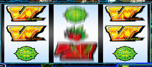 リール左のサブモニターにヴァルヴレイヴ1、3、4、5、6号機出現でモードなどを示唆。