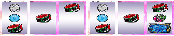 小役入賞の次ゲーム(ゲーム数減算ストップ状態)でも同様の抽選を行うため、小役を引くほど期待度がアップする。 -