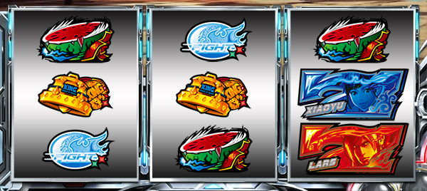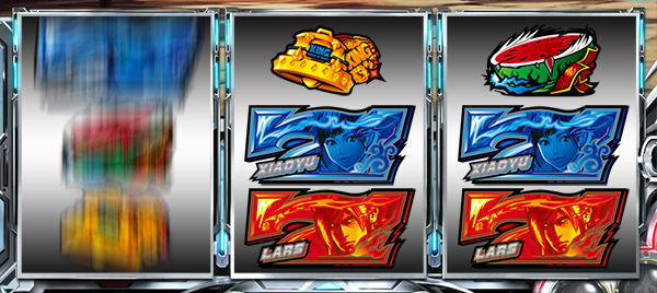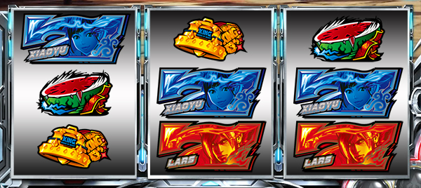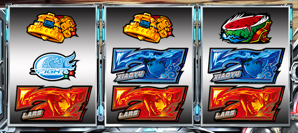 中・下段に2連7図柄が停止した場合は、リプレイor強チェリーとなり、「拳奪バトル」中ならチャンス、「EXTRAラウンド」中なら拳球獲得濃厚となる。 -