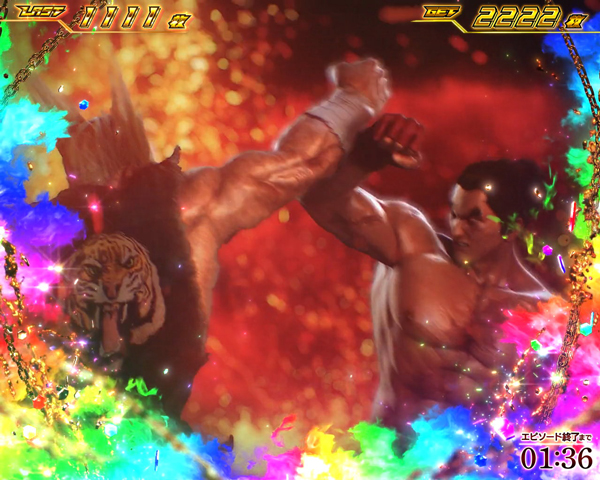 設定差が大きく、設定1と設定6で約3.5倍の差がある。AT「鉄拳ラッシュ」直撃確率 設定1 1/12580.4 設定2 1/10774.5 設定3 1/7471.1 設定4 1/5347.4 設定5 1/3840.1 設定6 1/3565.2 -