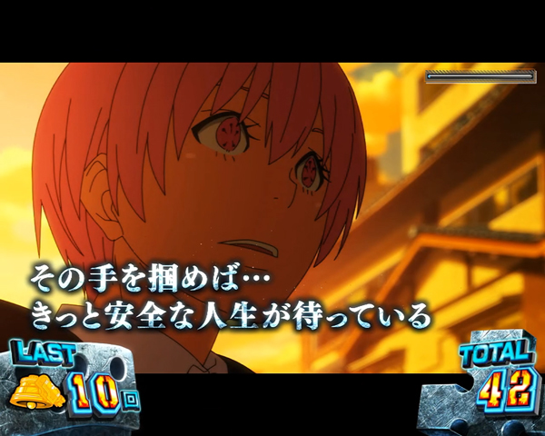 炎炎ループ中 炎炎BOOSTのチャンス演出 示唆内容 次回予告経由の伝導者決戦 炎炎BOOSTのチャンス 伝導者決戦の炎炎ノ炎柄タイトル 炎炎BOOSTのチャンス 下パネル消灯 炎炎BOOSTのチャンス フィーバーゴースト⇒アサルト出現 炎炎BOOST以上!? 特殊確定画面(青パターン) 炎炎BOOST以上!? 死ノ圧PUSH 炎炎BOOST以上!? 赤タイトル+優勢+最終ゲームでチャンスUP発生⇒復活 炎炎BOOST以上!? 伝導者決戦で押し順ナビから十字目変換 炎炎BOOST以上!? 炎炎大戦中の黒ナビ出現 炎炎BOOST以上!? 伝導者決戦で青勝利 炎炎BOOST以上!? 全消灯 炎炎BOOST以上!? 伝導者決戦で紅丸出現 超炎炎BOOST濃厚 発生すれば炎炎BOOST以上となる演出を多数搭載。