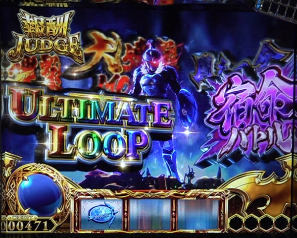 ・PUSH文字演出を経由(ボタンが効かない)し、時間経過でブラックアウト恩恵 GOB揃い+上位AT「ULTIMATE LOOP」突入濃厚
