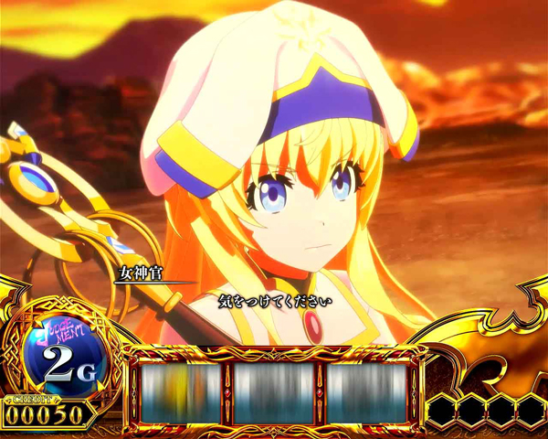 エンディング中のボイス示唆 ボイスキャラ ボイス内容 示唆内容 ゴブリンスレイヤー 大したものだな デフォルト ドワーフ やりおるのう 高設定示唆「弱」 リザードマン おお、甘露甘露 高設定示唆「弱」 エルフ まあまあってとこかしら 高設定示唆「強」 女神官 すごいです 高設定示唆「強」 ドワーフ つーかこりゃ案外と悪かねえわな 設定2以上濃厚&高設定示唆「弱」 リザードマン 中々の調子ではござらぬかな 設定2以上濃厚&高設定示唆「強」 エルフ ううーん、いいわねー 設定3以上濃厚 女神官 今日は絶好調です 設定4以上濃厚 牛飼娘 良いことありそうだね 設定5以上濃厚&高設定示唆「弱」 受付嬢 堂々としていれば良いんですよ、堂々と 設定5以上濃厚&高設定示唆「強」 剣の乙女 剣の君よ、守りの加護を 設定6濃厚