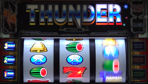 落雷タイミングとサイドLEDの色に注目。サイドLEDが赤発光した場合は、ハズレとスイカを否定する。