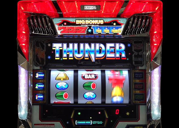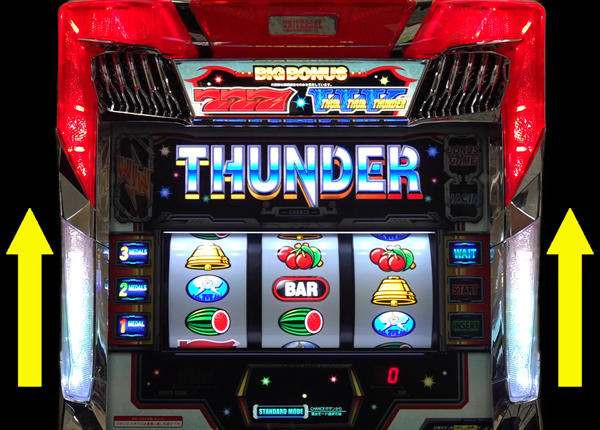 リール始動時に「ゴロゴロ」という音とともに筐体周囲のLEDが点灯する演出。
