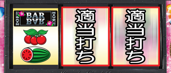 スイカが停止した場合は、中リールにスイカ図柄を狙い、右リールを適当打ち。