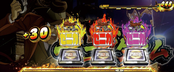 レア役成立時は「ゼニガ短縮」獲得などが期待でき、小役の入賞パターンで期待度が異なる。