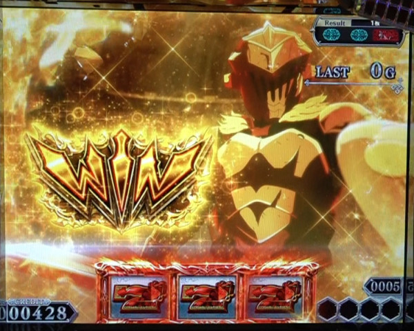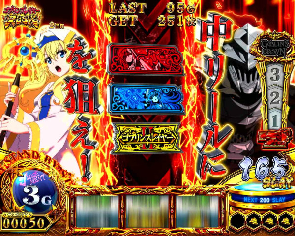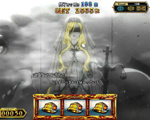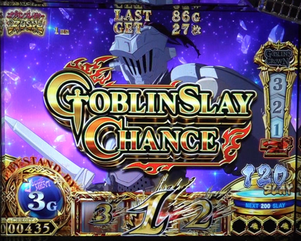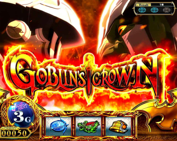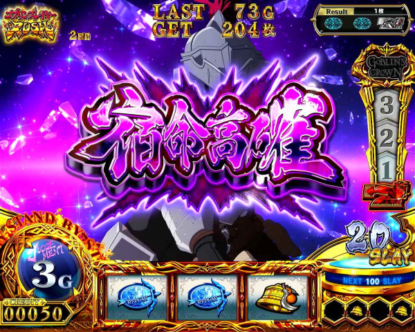 ゴブリンスレイヤーBONUSに加えて、上位ATをかけた「GOBLIN'S CROWN」突入の権利を獲得。