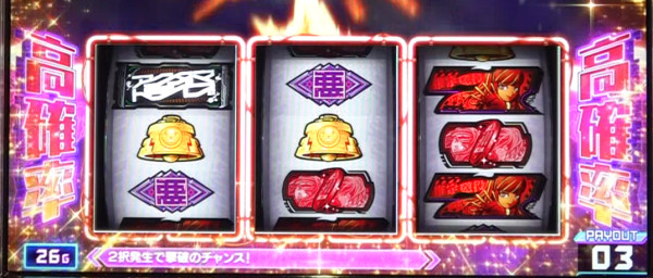 ST「デッドオアアライブ」と同様に全役で成功を抽選しているが、チャンス目に加えて悪揃いでも成功濃厚となるため成功期待度が大幅にアップしている。
